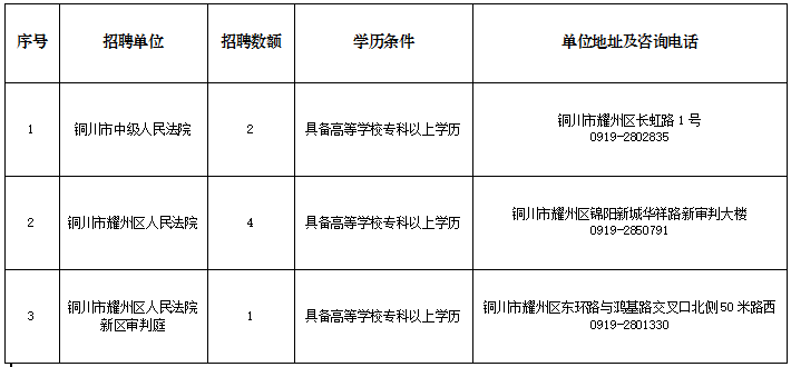 (七)有關(guān)招聘信息將在“銅川市中級(jí)人民法院 ”官網(wǎng)及微信公眾號(hào)上公布,請(qǐng)考生密切留意并及時(shí)查看,如因考生未及時(shí)查看等原因,導(dǎo)致的相應(yīng)后果由本人承擔(dān)。