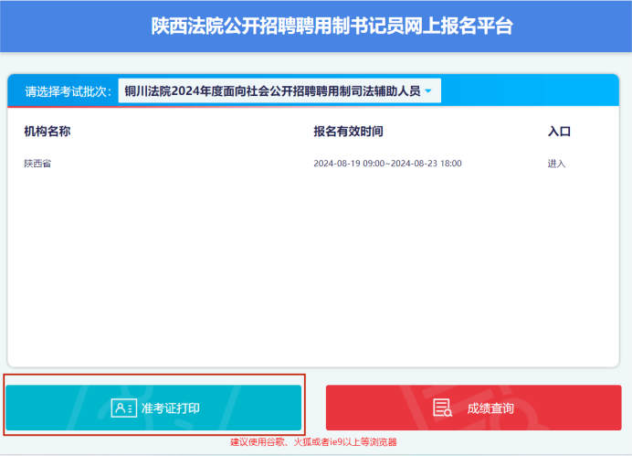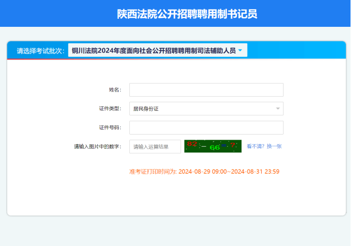 銅川法院2024年度面向社會(huì)公開(kāi)招聘聘用制司法輔助人員考試定于9月1日舉行,考生們請(qǐng)于8月29日9:00至8月31日24:00期間登錄報(bào)名系統(tǒng)(http://www.ecuadorsfinest.com/)自行打印準(zhǔn)考證。